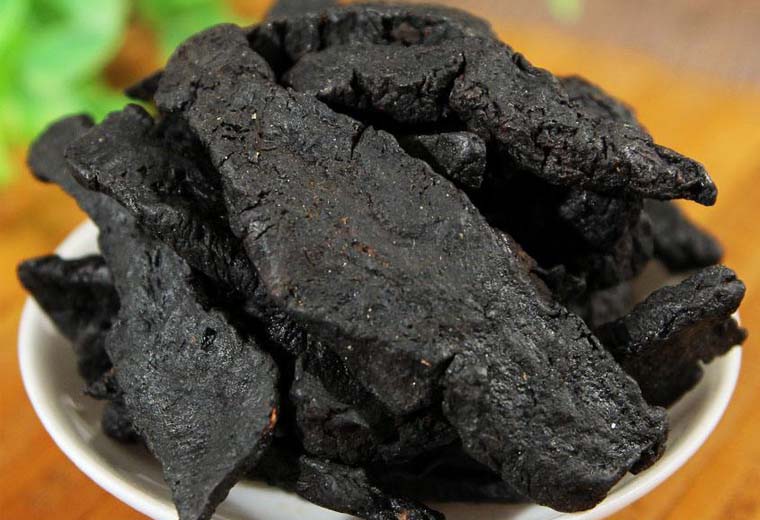 本品为生地黄的炮制加工品。性状本品为不规则的块片、碎块,大小、厚薄不一。表面乌黑色,有光泽,黏性大。质柔软而带韧性,不易折断,断面乌黑色,有光泽。无臭,味甜。